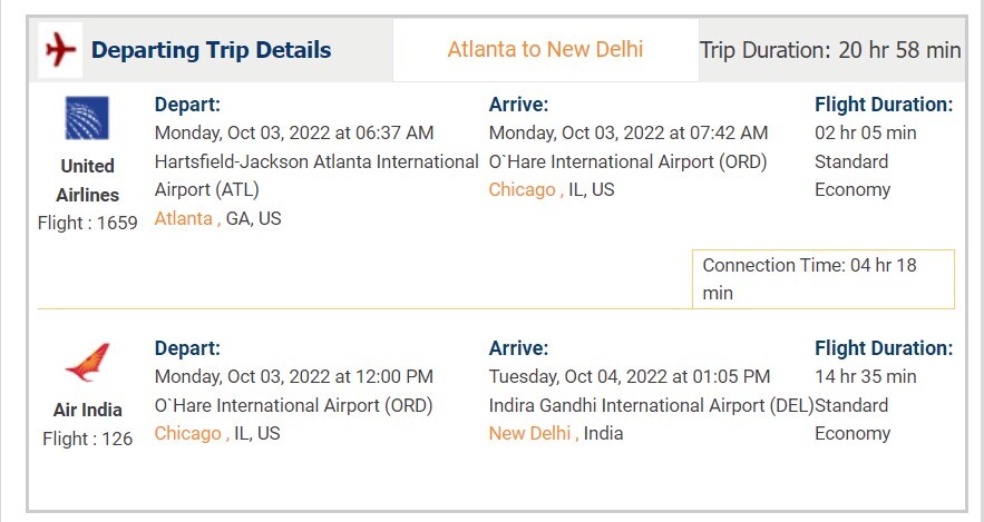 1, 국제선(아틀란타-뉴델리) by Indian Eagle ($1,484 Round)