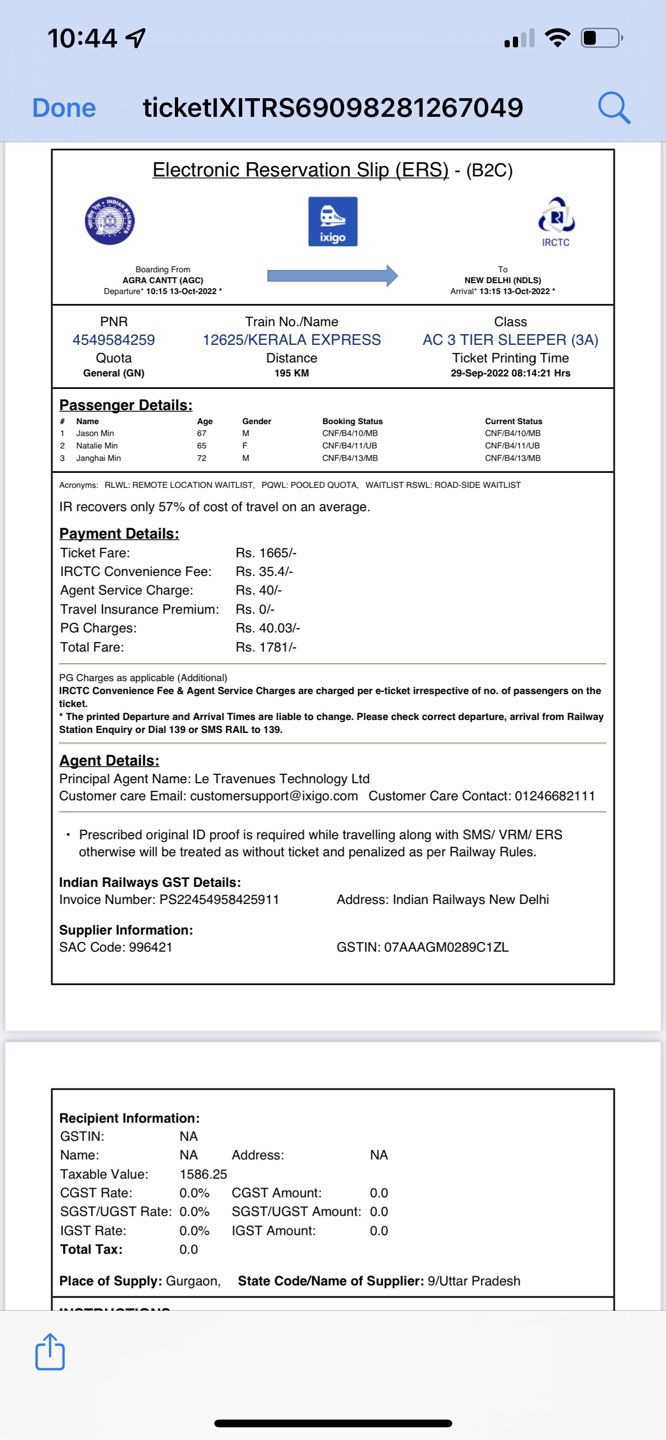 3, 자이푸르-아그라 by Train (10/11, $5.54)