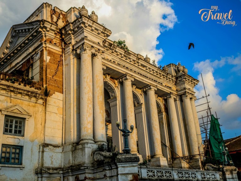 카트만두 더르바르 광장의 오래된 건축물 중 하나의 황폐한 모습