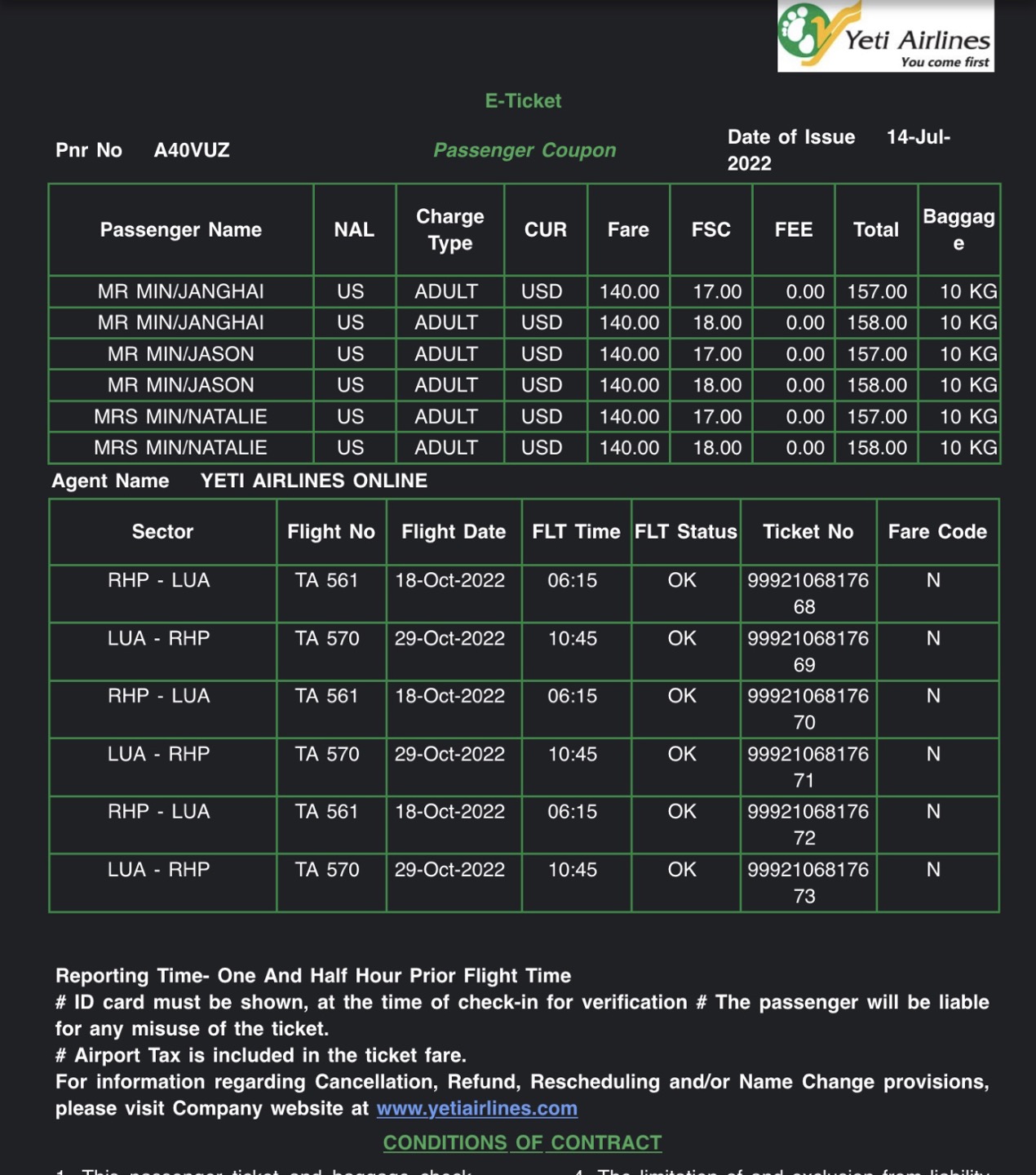 10/29 루크라 10:45am-->카투만두 라메찹11:1am($289.80 Round)