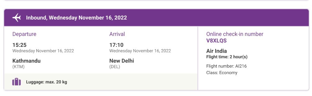 출국편: 아틀란타 ->시카고경유-> 뉴델리 ->카투만두