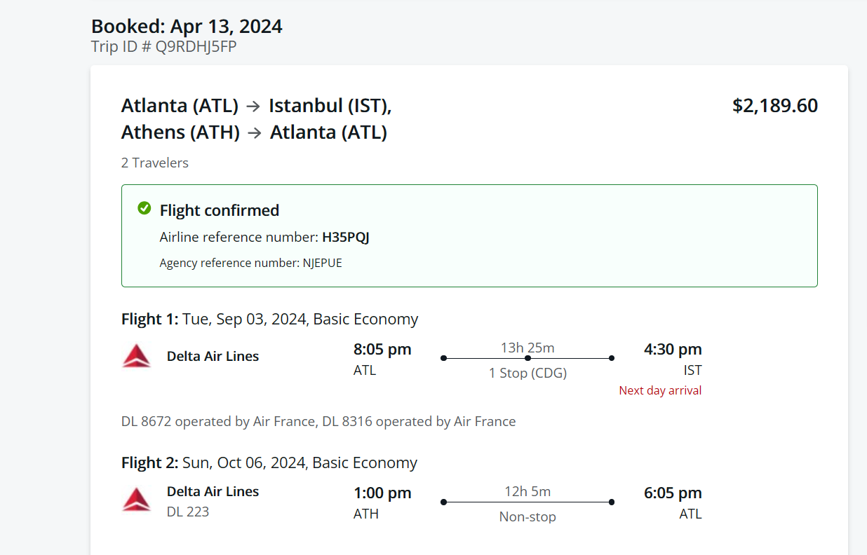 10/6 (일) 아테네 공항 (35분) -> 아틀란타 공항 (12시간5분 비행)