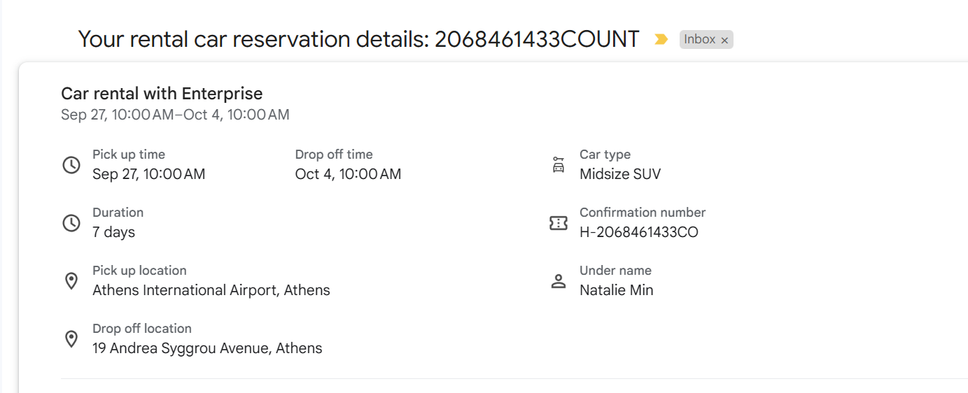 5:45 PM 헤라클리온(크레타) 도착 & 렌트카 인수 (SurPrice Car Rentals) Confirmation: #SC6142257