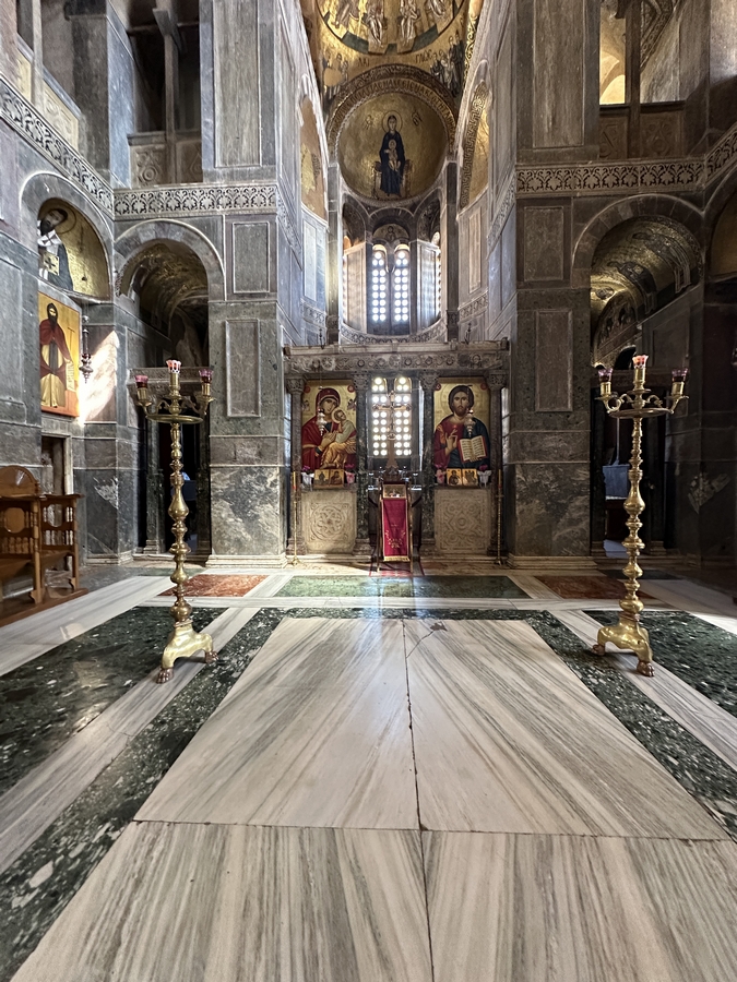 - 수도원의 주교회로, 비잔틴 중기 건축의 전형을 보여줍니다.