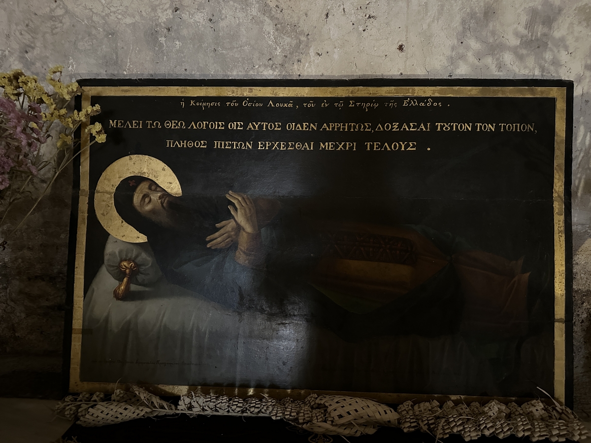 "그리스 스테리온(Sterion)에 거주했던 성 루카스의 안식(영면)."